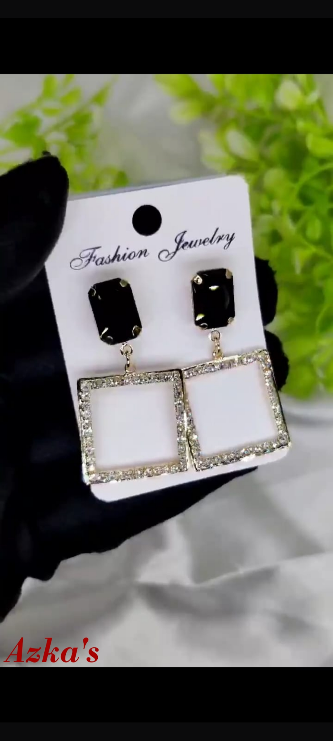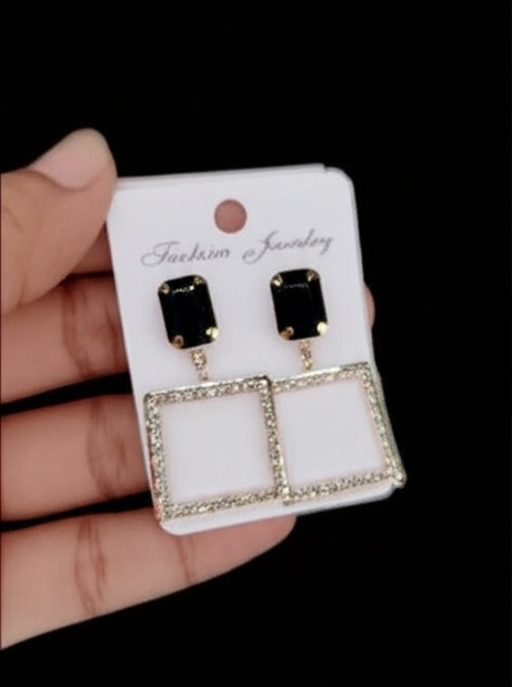Imported Elegant Square Dangle Earrings with Luxe Black Crystal Top
